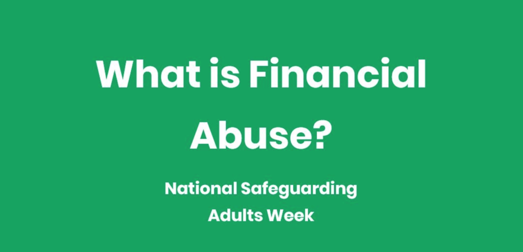 The Care Act 2014 describes ‘financial abuse’ as a type of abuse which includes having money or other property stolen, being defrauded, being put under pressure in relation to money or other property and having money or other property misused.